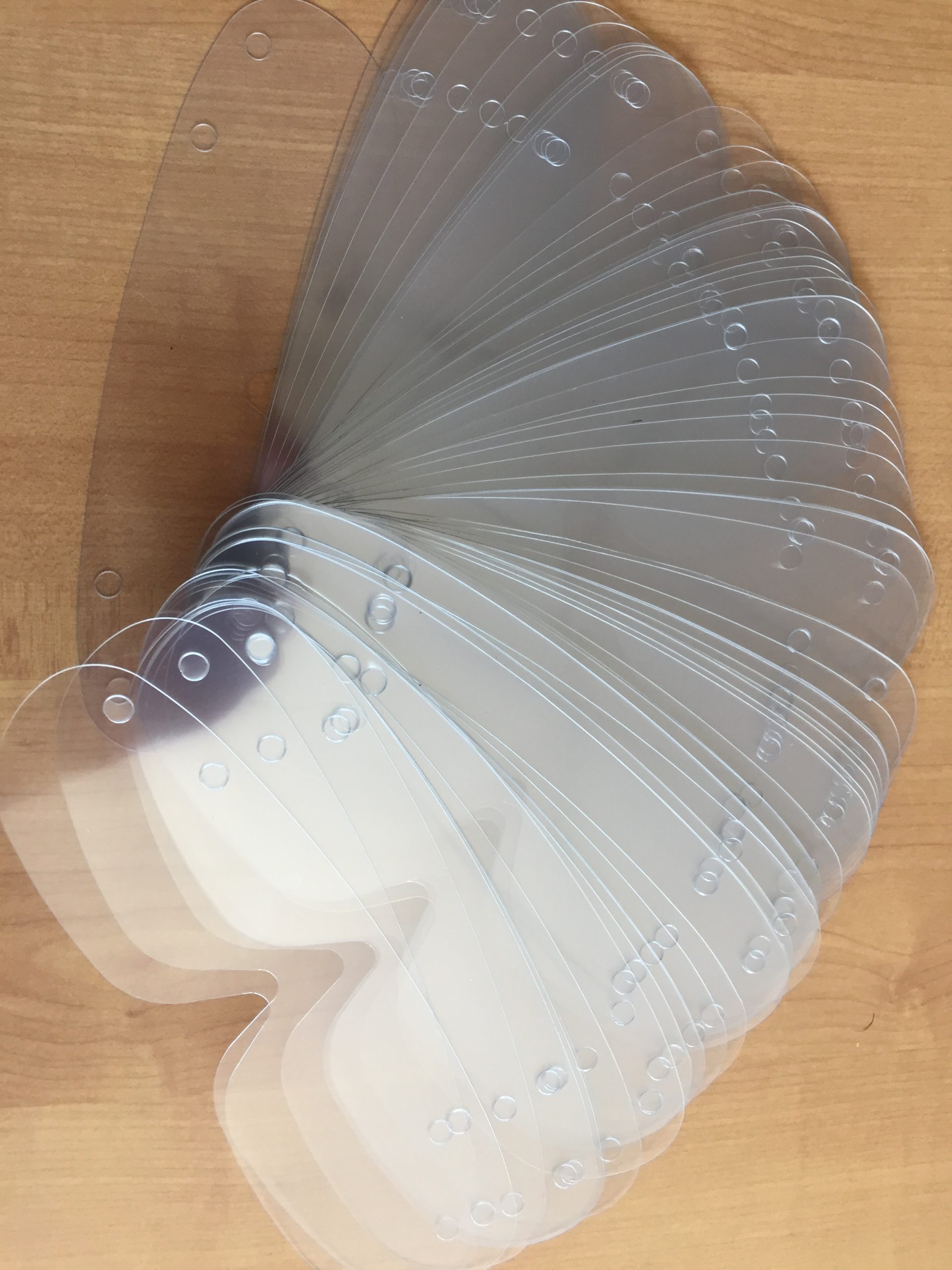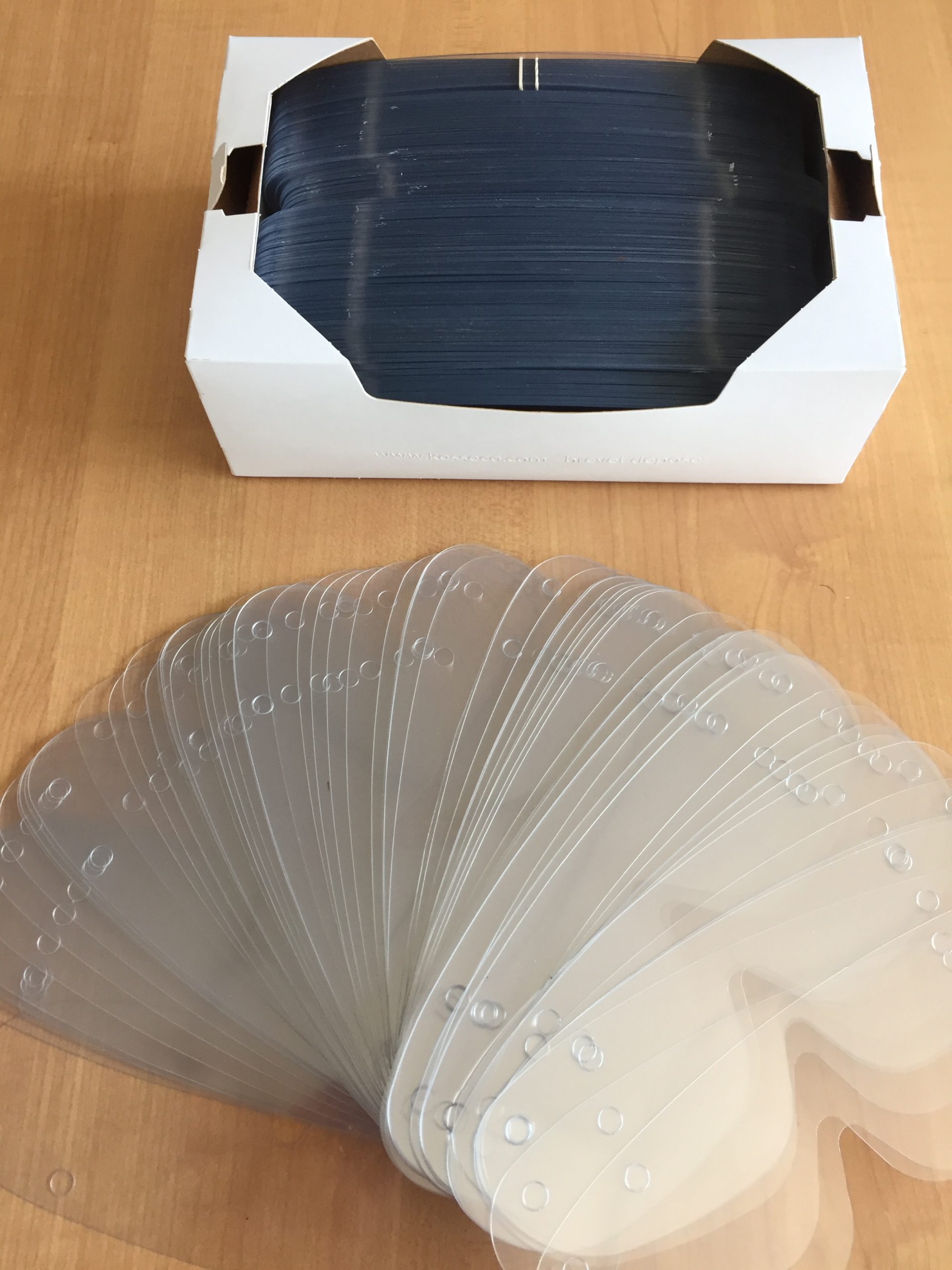 Pour le SAMU, nous produisons des porte-visières oranges (cf. photographie). Nous en livrerons 80 pendant le week-end.