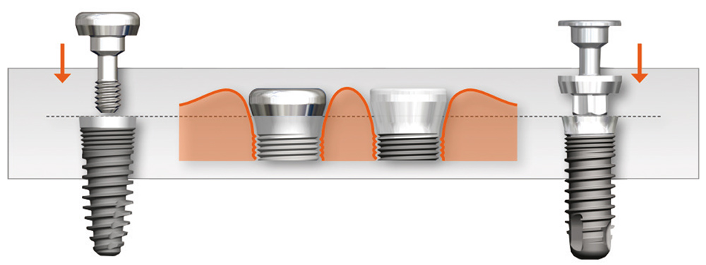Le profil des vis de cicatrisation EVL® est inspiré directement de l’anneau esthétique*. L’évasement permet de préparer l’entrée du berceau prothétique et de conformer un accès ajusté et sans tension tissulaire au profil des composants définitifs.